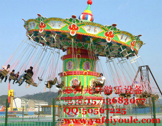 迷你小飛椅是河南龍升游樂設(shè)備有限公司推出的一種新型飛行塔類兒童游樂設(shè)備。外觀小巧時(shí)尚卻功能齊全,圖案設(shè)計(jì)繽紛浪漫,絢麗的燈飾,造型華麗異常,迷你小飛椅的吊臂下連著座椅,設(shè)備運(yùn)轉(zhuǎn)時(shí)游客猶如在空中飛翔,飄蕩,海闊天空,驚心動(dòng)魄。此種兒童游樂設(shè)備老少皆宜,特別對(duì)青少年兒童具有非常大的吸引力。飛椅像是一把大傘下吊著很多把靚麗、精致、安 全的吊椅,在大傘轉(zhuǎn)動(dòng)時(shí),吊椅在空中波浪起伏地轉(zhuǎn)飛舞。此時(shí)承坐在吊椅上的游客,充滿刺激、浪漫的感覺。迷你飛椅顯的小巧、卡通,在設(shè)備的最低端有一個(gè)可以旋轉(zhuǎn)的托盤,托盤上面是用來支撐飛椅的支架,在支架上面安 裝設(shè)計(jì)了卡通圖案,支架最頂端連接的有鎖鏈,鎖鏈垂直的最低端連接飛椅。整個(gè)設(shè)計(jì)跟“旋轉(zhuǎn)郁金香”的設(shè)計(jì)類似。
