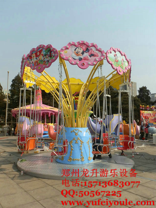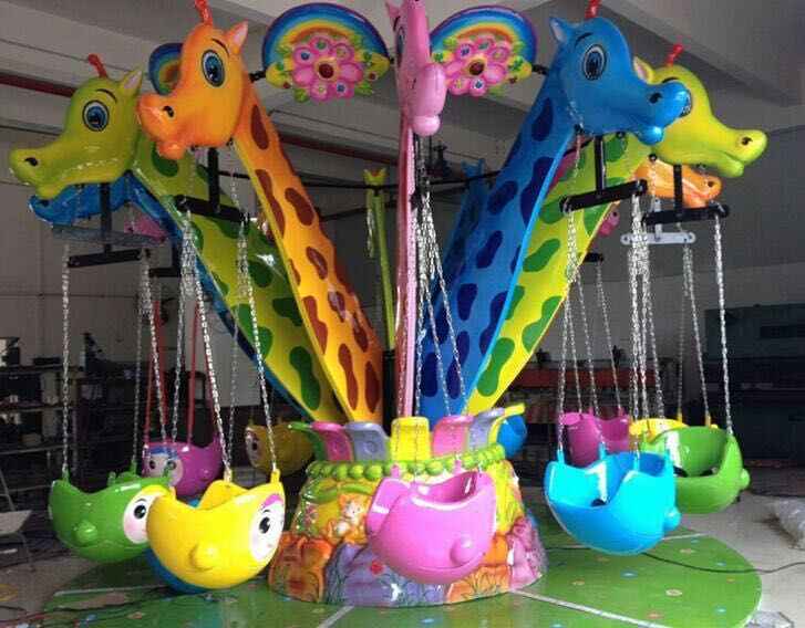 新款小飛椅是搖頭飛椅的縮小版,同樣也是對(duì)之前迷你小飛椅的造型升級(jí),草綠色的底盤加上栩栩如生的蝴蝶、小鳥圖案做點(diǎn)綴,承載座艙的大臂換成了一個(gè)個(gè)形態(tài)逼真、絢麗多彩的長(zhǎng)頸鹿造型,精美絢麗的卡通座艙在空中波浪起伏地旋轉(zhuǎn)飛舞。游客猶如在草原上飛翔。該設(shè)備柔和了絢麗的燈飾和七彩繽紛的圖案設(shè)計(jì),造型華麗,使游客留戀忘返,激發(fā)游客的參與感,本設(shè)備老少皆宜,特別對(duì)少年兒童更具有強(qiáng)烈的吸引力。