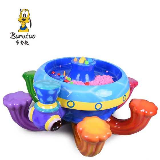 新款烏龜沙池?fù)碛卸喾N沙池模具,可以讓小朋友隨心搭配。而且可以同時供六個小朋友同時使用,在增加趣味性的同時增加了小朋友之間的互動。其本身采用玻璃鋼材質(zhì)一次塑造成型外表光滑細(xì)膩色彩鮮艷絢麗。其本身采用的烏龜造型外型精巧可愛,更是迎合了小朋友喜歡可愛事物的心理。