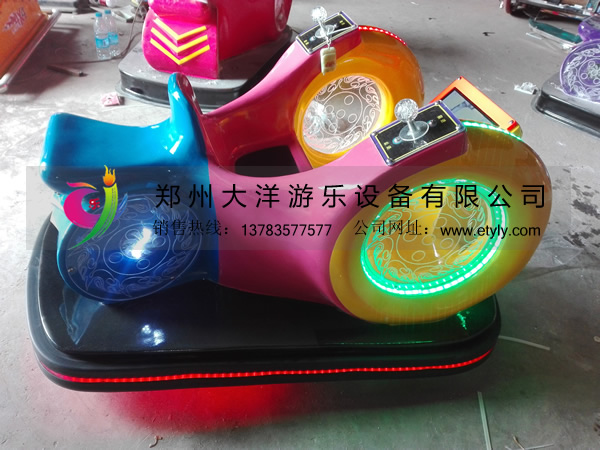 大洋蝸牛碰碰車游樂設(shè)備以款式新穎,液晶顯示,燈光獨特,操作簡易,趣味性強的特點,贏得了無數(shù)孩子和家長的乘座。