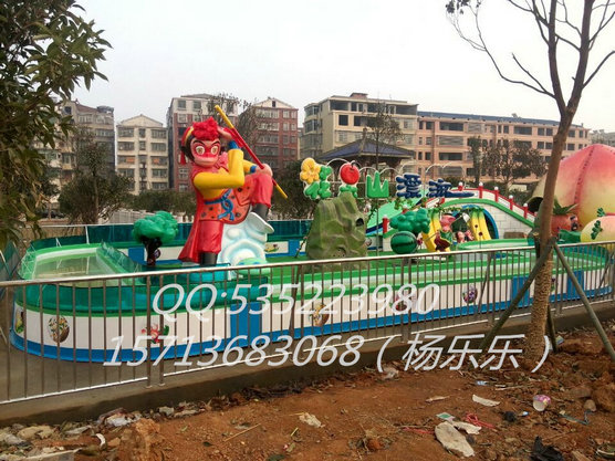 “花果山漂流”利用周邊水系組成環(huán)形水上漂流,長達(dá)52米的曲型水道可供游客漂流,使游客暢享漂流的樂趣;ü狡鞯脑O(shè)計(jì)基礎(chǔ)是《西游記》中的神話形象“齊天大圣孫悟空”及“花果山水簾洞”,孫悟空高達(dá)4.28m,而水簾洞高度可達(dá)10米高,設(shè)備內(nèi)部建筑在充分保留了神話人物原型的同時(shí)融入了大量現(xiàn)代的元素 風(fēng)格,可謂是融貫今古。而建筑的造型則選用了巨型蘋果、巨型香蕉、巨型蜜桃的外在形象,色彩豐富誘人,色澤明麗清新。所有的“建筑”都帶有紅外線感應(yīng),游客可以在漂流的同時(shí)按電鈕玩游戲,只要打中目標(biāo)的靶心,就會(huì)出現(xiàn)相關(guān)的場景。比如打中孫悟空,猴哥就會(huì)吐云吐霧、大鬧天宮;打中假山,假山會(huì)噴水;打中巨型香蕉下的豬八戒會(huì)上下跳動(dòng)。該設(shè)備充滿了神話色彩,寓教于樂,益智童趣,是一款不可多得的趣味性極高的游樂設(shè)備,一進(jìn)入市場就得到了眾多游客的青睞!歡迎您選擇我公司的游樂設(shè)備,來廠咨詢!!!