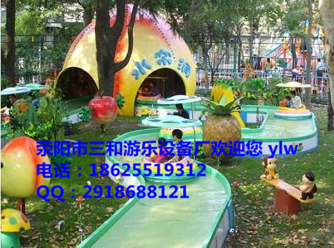 “花果山漂流”利用周邊水系組成環(huán)形水上漂流,整套設(shè)備里邊所有造型奇特的“建筑”都帶有紅外線感應(yīng),游客可邊漂游邊按電鈕玩游戲,只要打中目標(biāo)的靶心,就會(huì)出現(xiàn)相關(guān)場(chǎng)景。少年兒童劃著船穿過(guò)“水簾洞”,順著一座小橋滑下,激起一片歡樂(lè)的浪花,假若打中假山,假山會(huì)噴水;假若打中巨型香蕉下的豬八戒,豬八戒會(huì)上下跳動(dòng);假若打中孫悟空,孫悟空會(huì)騰云駕霧大鬧天空。
