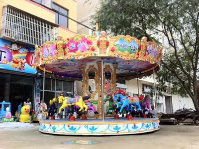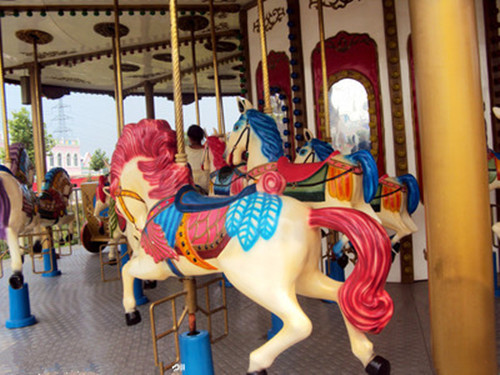 簡(jiǎn)易轉(zhuǎn)馬作為最經(jīng)典的游樂場(chǎng)設(shè)備,旋轉(zhuǎn)木馬深受人們的喜愛!許多小朋友還有年輕的情侶們都喜歡乘坐在旋轉(zhuǎn)木馬上的感覺.簡(jiǎn)易轉(zhuǎn)馬外形夢(mèng)幻華麗,給人童話般的視覺享受,坐在旋轉(zhuǎn)木馬上,像風(fēng)一樣自由的旋轉(zhuǎn),心情也無比放松!在一些大型的游樂場(chǎng)、公園、廣場(chǎng)、兒童樂園等人流量集中的地方處處都可以看到大型旋轉(zhuǎn)木馬的身影!簡(jiǎn)易轉(zhuǎn)馬,有多個(gè)名稱都是指這一種設(shè)備,轉(zhuǎn)馬啟動(dòng)之后轉(zhuǎn)盤勻速轉(zhuǎn)動(dòng),形態(tài)各異的轉(zhuǎn)馬隨之上下起伏,使游樂者產(chǎn)生縱馬揚(yáng)鞭、馳騁疆場(chǎng)的感覺。比如說:木馬、轉(zhuǎn)盤馬機(jī),轉(zhuǎn)盤馬等等。他是游樂設(shè)備中的一種,顧名思義,轉(zhuǎn)馬是要轉(zhuǎn)動(dòng)的,但是單一的轉(zhuǎn)動(dòng)又不形象,現(xiàn)在又使其能夠上下起伏。旋轉(zhuǎn)木馬游樂設(shè)備,不需專人管理,每次可乘坐三人,采用投幣啟動(dòng),優(yōu)質(zhì)玻璃鋼材料高檔工藝制作,高亮噴漆,造型新穎,外形精致美觀耐用,顏色絢麗多彩,工作性能安 全穩(wěn)定可靠,具有環(huán)保、安 全、耐腐蝕、穩(wěn)定好等特點(diǎn)。