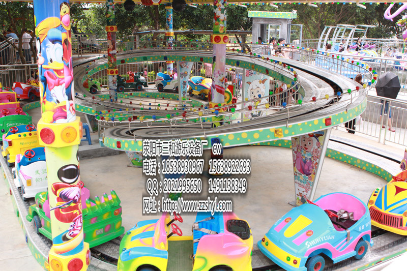 迷你穿梭游樂設備是一個老少皆宜的機動游戲項目,在立體軌道上,一輛輛穿梭車緩緩在軌道滑行。時而上坡時而下坡,忽然遇到360度回旋軌道,更是讓人大呼過癮。迷你穿梭又叫立環(huán)跑車,是由我們三和游樂設備公司推出的一種新型游樂設施!它是在立交式軌道上行駛的一種新型游樂設備,它是由造型精美、風格各異的跑車組成的浩蕩車隊,各自驅動同步行駛,沿軌道方向穿梭于具有現代化標志的立式軌道上,配有五彩繽紛的彩燈、音響及兒童卡通畫裝飾。讓孩子們體會翻山越嶺和飛躍時空的感覺,夠刺激又無恐慌感,使人身臨其境,賞心悅目,深受兒童喜愛。