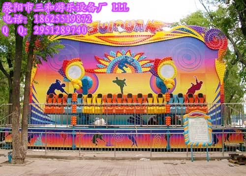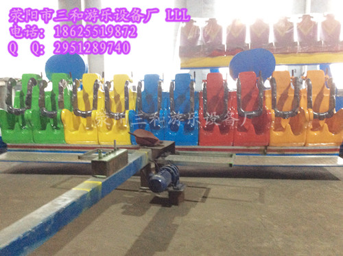 “搖滾排排坐”是一種往復(fù)旋轉(zhuǎn)式的大型游樂(lè)設(shè)備。由兩根轉(zhuǎn)臂連接著乘坐的一長(zhǎng)排座椅,整個(gè)運(yùn)動(dòng)是在與地面垂直的平面上進(jìn)行的。乘客排排坐在長(zhǎng)椅上,配合搖滾的音樂(lè)上下左右往復(fù)旋轉(zhuǎn),上升下降的速度很快,感受到超重與失重的交替,非常有刺激性,在尖叫中感受狂歡的氣氛,身心全然的釋放。