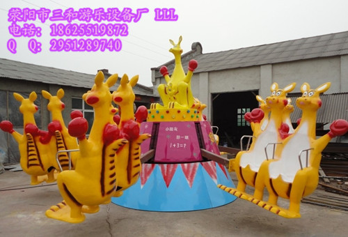 袋鼠跳是我公司研制的一種新型彈跳類游樂設(shè)備,產(chǎn)品座艙造型由六組袋鼠組成,造型可愛生動,童趣十足,適合不同年齡階段的人乘坐,該游樂設(shè)施運(yùn)行時,伴隨奇妙的音樂,座艙會隨著設(shè)備的旋轉(zhuǎn)而上下跳動,猶如坐在袋鼠的肚囊中一般,給你不一樣的乘坐體驗(yàn)和樂趣。