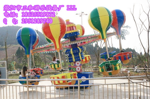 ` “桑巴氣球”是一款完美的小型游樂設(shè)備,將五顏六色的熱氣球和漂亮的座艙組合在一起,此產(chǎn)品集升降、公轉(zhuǎn)、自轉(zhuǎn)于一體,每個吊艙可乘坐4人,乘客可以自己操作中心轉(zhuǎn)盤,控制座艙的自轉(zhuǎn),使乘客在乘坐過程中能體驗到更多樂趣,感覺自己比座熱氣球飛天還要刺激。熱氣球和茶杯,毫不相干的兩個東西就這樣被組合在一起,形成了現(xiàn)在一項非常受歡迎的游樂設(shè)備“桑巴氣球”。