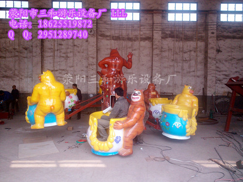 機械熊出沒是一種繞中心軸旋轉升降的熊出沒類游藝機,本游藝機是一種適合2--8歲兒童和8—(4)人乘座的室內(nèi)外游藝機,本游藝機是由一臺單相電動機驅動,兒童乘座在玻璃鋼熊抱罐模型上完成旋轉,升降運動。