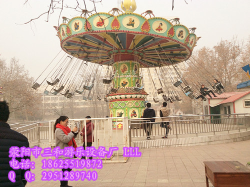 豪華飛椅是一種新穎飛行塔類游樂設(shè)備。立柱作公轉(zhuǎn)運動,頂部大轉(zhuǎn)盤上升、傾斜、搖擺式反方向自轉(zhuǎn)運動,使得環(huán)鏈懸掛的乘客,在離心力的作用下起伏飛旋,三種疊加運動的完美結(jié)合,猶如芭蕾綻放,又如銀燕在睛空中飛舞。夜幕降臨,擺旋轉(zhuǎn)傘與城市霓虹交輝相應(yīng),疑是一道城市彩虹。游客乘坐在垂掛的吊椅上,隨轉(zhuǎn)盤的轉(zhuǎn)動而徐徐升起,仿佛 在高空中飛舞翱翔,由于轉(zhuǎn)盤的升高,垂直柱頭角度漸漸偏轉(zhuǎn),使游客猶如置身于波濤起伏的大海中其樂無窮,再加上豪華靚麗的外觀裝飾,令人耳目一新,在運動中使圍觀之人眼花繚亂,直想一試為快,真是游樂園的絕對亮點。