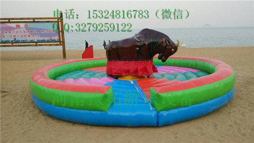 瘋狂斗牛機(jī)多少錢? 大型兒童玩具斗牛機(jī) 機(jī)械斗牛機(jī)廠近期隆重推出新品---瘋狂斗牛。該產(chǎn) 品為一頭仿真的機(jī)器牛,由電腦自動(dòng)控制,在牛的怒吼聲中,其模仿真牛忽上忽下、忽快忽慢、忽甩 忽撞、蠻力十足,若想征服它可要使出渾身解數(shù),驚險(xiǎn)異常,極大迎合了當(dāng)今都市人征服欲望強(qiáng)、尋 求刺激的心理。在北京四臺(tái)的綜藝欄目《歡樂總動(dòng)員》中,曾把該產(chǎn)品作為娛樂項(xiàng)目之一。眾嘉賓在 激昂的斗牛曲聲中,紛紛上前一試身手。