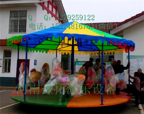 轉(zhuǎn)馬游藝機(jī),外形新穎,顏色絢麗,新型簡(jiǎn)易轉(zhuǎn)馬,是青少年朋友們非常喜愛乘坐的游藝機(jī)。轉(zhuǎn)馬啟動(dòng)之后轉(zhuǎn)盤勻速轉(zhuǎn)動(dòng),形態(tài)各異的轉(zhuǎn)馬隨之上下起伏,使游樂者產(chǎn)生縱馬揚(yáng)鞭、馳騁疆場(chǎng)的感覺。本產(chǎn)品適用于公園游樂場(chǎng)、少年宮、生活廣場(chǎng)、社區(qū)等人后密集流動(dòng)場(chǎng)所。該產(chǎn)品采用玻璃鋼材料制作,具有環(huán)保、安 全、耐腐蝕、穩(wěn)定性好等特點(diǎn),可根據(jù)場(chǎng)地條件定做。兒童簡(jiǎn)易轉(zhuǎn)馬是一款可以讓孩子們享受萬(wàn)馬狂奔感覺的游樂設(shè)備,深受孩子們的喜愛,16座簡(jiǎn)易轉(zhuǎn)馬,歡迎咨詢鄭州豫拓游樂,給您帶來(lái)不一樣的簡(jiǎn)易轉(zhuǎn)馬。