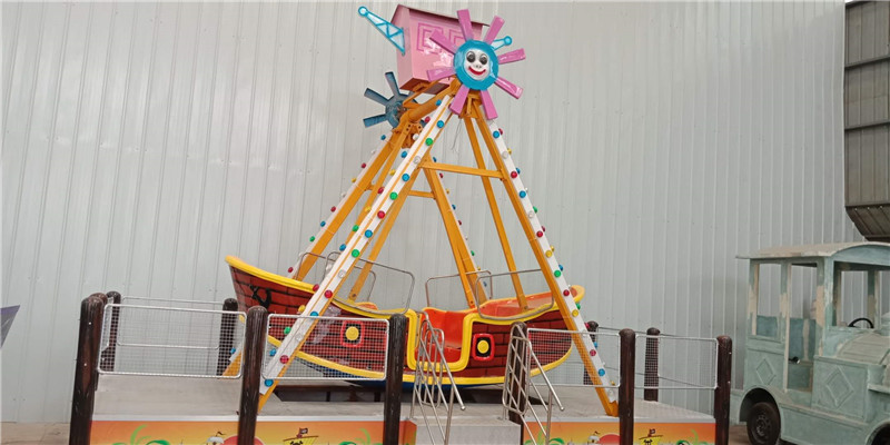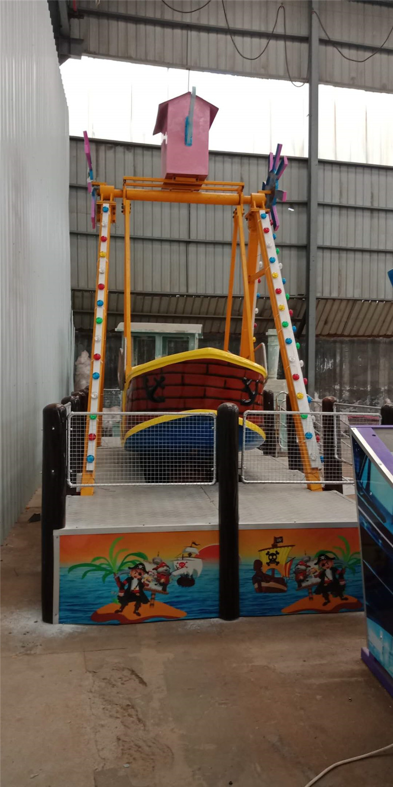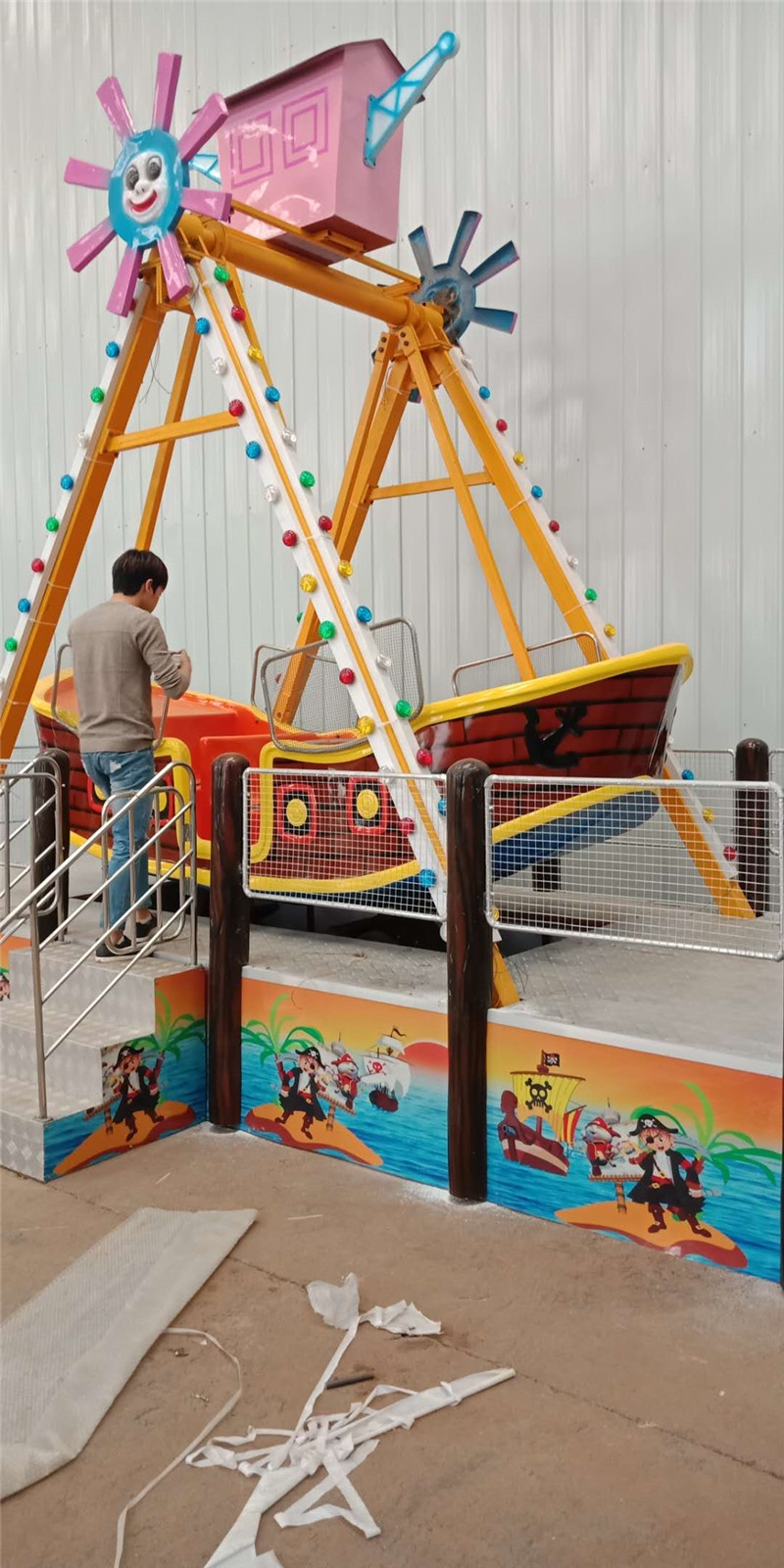 海盜船是一種全新設(shè)計(jì)的觀覽車類游藝機(jī),是一種繞水平軸往復(fù)擺動(dòng)的游樂(lè)項(xiàng)目,該種游藝機(jī)因造型圖同而名稱各異,“海盜船”因?yàn)槠渫庑畏鹿糯1I船而得名。海盜船造型為各異,海盜船啟動(dòng)后從緩慢擺動(dòng)慢慢的急速擺動(dòng),乘客乘坐于海盜船之上,隨著由緩至急的往復(fù)擺動(dòng),猶如蒞臨驚濤駭浪的大海之中,時(shí)而沖上浪峰,時(shí)而跌入谷底,驚險(xiǎn)刺激,挑戰(zhàn)乘客心理承受能力的極限,我公司生產(chǎn)的海盜船可配套四聲道汽車音響系統(tǒng),給用戶帶來(lái)耳目一新的感覺(jué)。