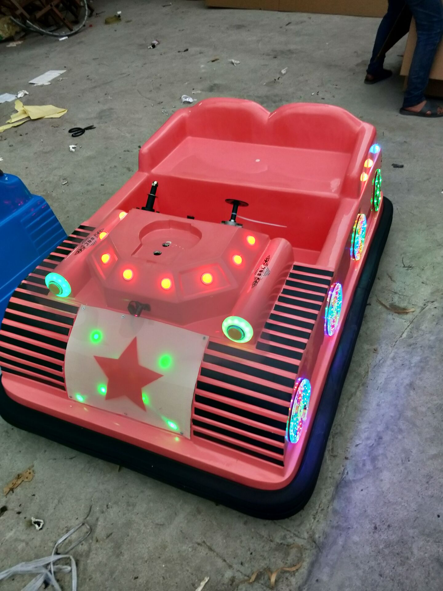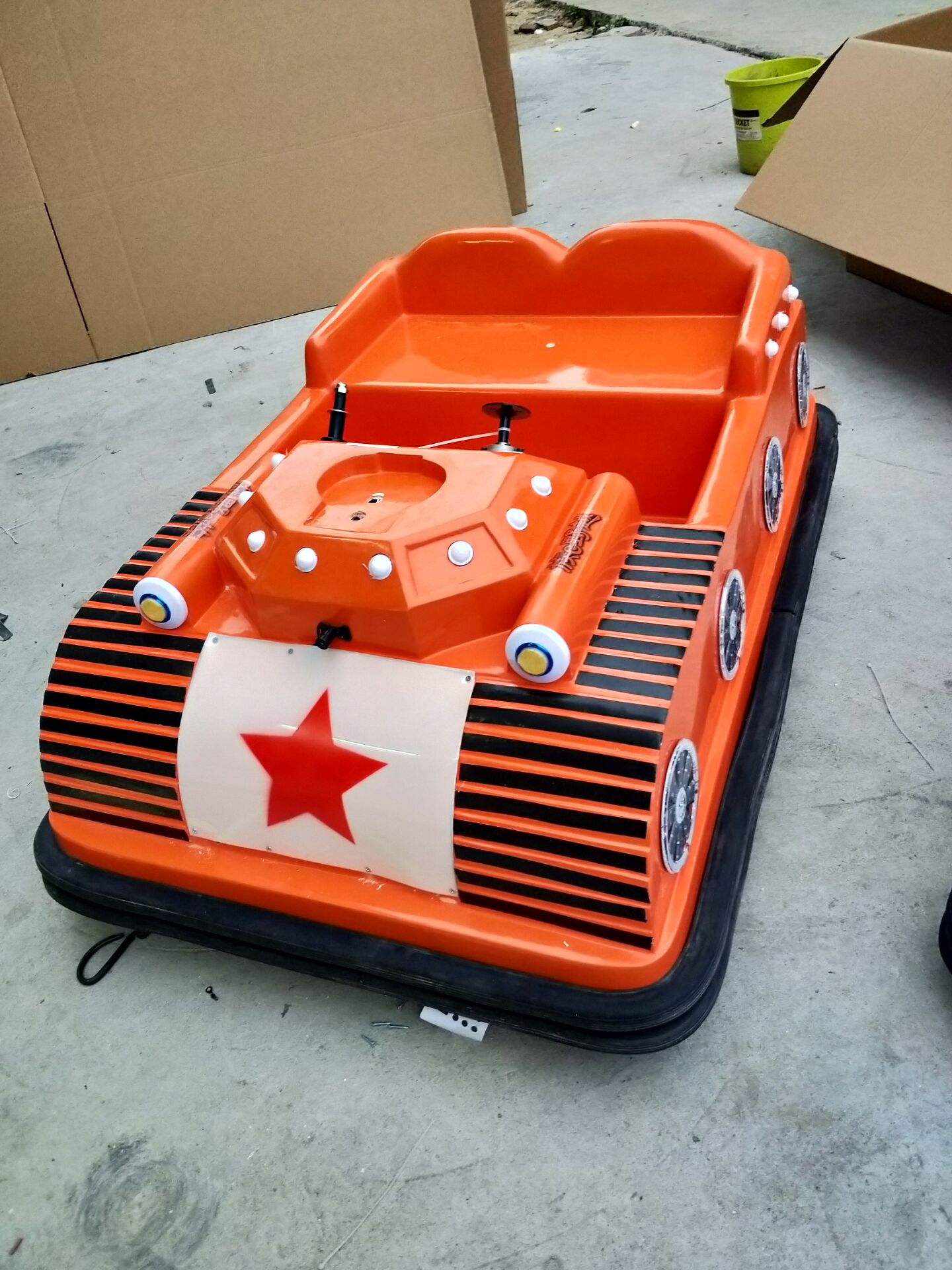 碰碰車的供電又稱地網(wǎng)式供電:一種用條塊狀導(dǎo)體組合而成的供電網(wǎng)絡(luò),是在一塊足夠大的絕緣板上,布置若干導(dǎo)電條,相鄰導(dǎo)電條的電極性相反,各導(dǎo)電條以適當(dāng)?shù)姆椒ǜ髯耘c電源的同名端相連。當(dāng)一個(gè)物體在供電網(wǎng)絡(luò)里自由活動(dòng)時(shí),可通過(guò)一個(gè)滑動(dòng)觸點(diǎn)組從供電網(wǎng)絡(luò)中吸取電能或電信號(hào)。本條塊狀供電網(wǎng)絡(luò),可直接應(yīng)用于給游樂(lè)園中的碰碰車供電。采用這種供電方法的碰碰車活動(dòng)場(chǎng)所,地面不必再鋪鋼板,可直接利用普通地面。碰碰車的游戲規(guī)則是:駕駛者爭(zhēng)取最快在場(chǎng)內(nèi)完成繞圈,途中可以橫沖直撞,把對(duì)手的車碰開(kāi)。當(dāng)時(shí)間到了,游戲結(jié)束時(shí)操作員把電源關(guān)上。碰碰車的速度通常很慢,就算是碰撞亦不會(huì)損害人和車。 最早的碰碰車在1910年代已出現(xiàn)。 電瓶碰碰車不需要特殊的場(chǎng)地配置,只要充滿電即可用,用起來(lái)很方便,一般的材質(zhì)為:底盤為鋼制,外殼為玻璃鋼。電瓶碰碰車:采用環(huán)保玻璃鋼制品一次成型制作而成,鐵件靜電噴塑烤漆,配備先進(jìn)的音響、定位、燈光、定時(shí)功能等,采用24v電瓶電源,仿制動(dòng)物制成,色彩艷麗,不褪色,具有環(huán)保、耐腐蝕、穩(wěn)固性好、美觀、款式新穎、安 全性能好,適應(yīng)場(chǎng)地廣泛等特點(diǎn),是深受市場(chǎng)歡迎和孩子們喜愛(ài)的游樂(lè)設(shè)備。
