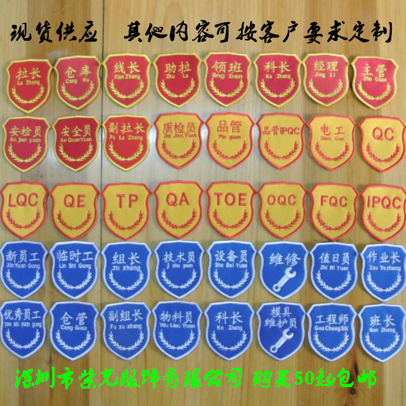 深圳紫光服裝廠-本廠有刺繡各種深圳龍崗工廠員工袖章,qc臂章,管理臂章,文字內(nèi)容,標志均可按客戶要求刺繡,數(shù)量一個起訂,不論數(shù)量多少,本廠均可為你供應(yīng),不管哪種臂章,袖章,本廠均可刺繡制作,還可印花臂章,彩圖印制袖章,文字印制臂章,深圳龍崗地區(qū)及周邊地區(qū)本廠還可以送貨上門。歡迎有需要的顧客朋友來電訂購!