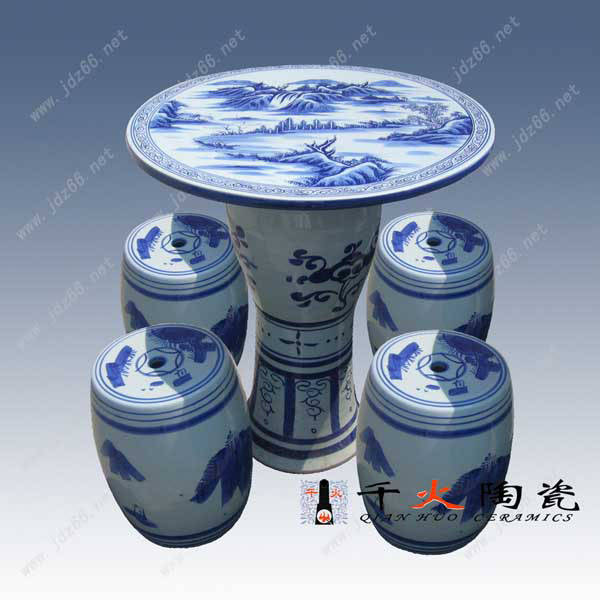 景德鎮(zhèn)陶瓷桌凳為純手工繪制,料色清爽活潑,層次分明,為各類青花瓷中的上品,畫面以山水樓閣,書法字畫,花鳥走獸等為題材,繪畫工藝活靈活現(xiàn),如身臨其境,同時我們工廠可以單獨繪制客戶喜愛的畫面,或者贈送題字等,具有非常的紀念意義,整款陶瓷桌凳彰顯大氣,有氣勢,如此精致的陶瓷桌凳適合園區(qū)布景、居家生活,集藝術審美和實用于一身,細節(jié)中無不體現(xiàn)著景德鎮(zhèn)唐龍?zhí)沾蓮S精湛的制瓷技藝和無與倫比的藝術成就!景德鎮(zhèn)唐龍?zhí)沾筛邷責频奶沾勺赖蕿榫暗骆?zhèn)特有,所以它結實美觀,經(jīng)久耐用,不怕日曬雨淋,不會產生類似破損或者變型等問題,陶瓷桌凳的畫面是手工繪畫的,藝術感非常強。!本公司完全采用景德鎮(zhèn)傳統(tǒng)手工陶瓷制作工藝制作。圓桌面、方桌面,青花、粉彩、墨彩等畫面齊全,款式多樣。
