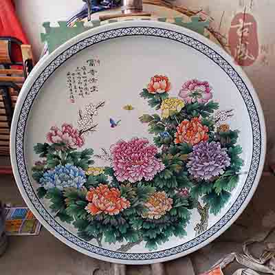 陶瓷大瓷盤古城下陶瓷高級畫工所繪制,繪制的圖案給人以給人感到幽雅閑致,此款大賞盤為手工拉胚而成,像這種大件裝飾品在燒制陶瓷的高溫下能成型。是相當(dāng)具有收藏價值的產(chǎn)品,我廠大師提供手工繪制你想要的圖案,為您打造獨一無二的陶瓷精品。大瓷盤的燒制是經(jīng)過1300攝制度的高溫?zé)贫桑沾纱蟠杀P畫面可永久保存、永不退染色。是一款永恒的禮品。