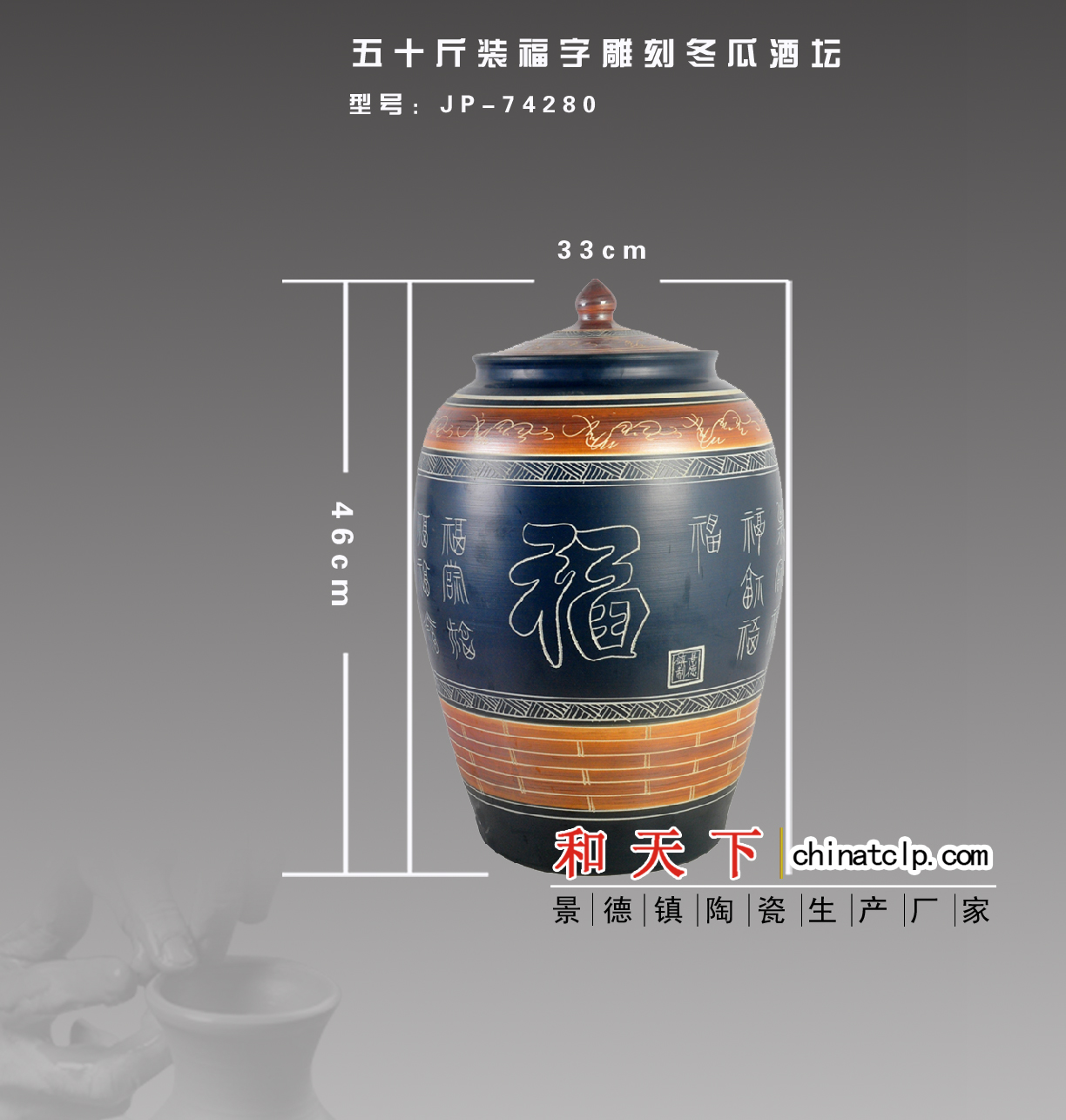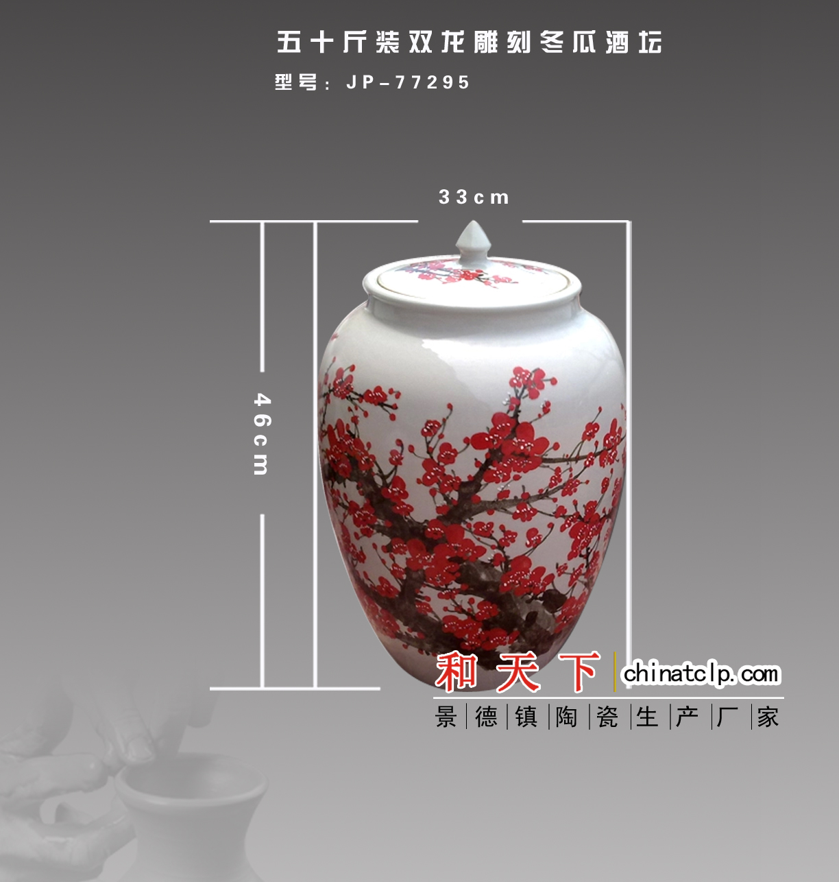 景德鎮(zhèn)和天下陶瓷專業(yè)制作陶瓷酒壇,景德鎮(zhèn)和天下陶瓷位于景德鎮(zhèn)中國陶瓷城香江東三路一號,交通方便。景泓陶瓷酒壇廠為擴(kuò)大生產(chǎn)規(guī)模,增強(qiáng)生產(chǎn)技術(shù),景泓陶瓷酒壇廠,廠始建 于2000年,至今已有十多年生產(chǎn)歷史,廠房座落于江西景德鎮(zhèn)高新陶瓷酒壇老廠,擁有先進(jìn)的生產(chǎn),檢驗(yàn)設(shè)備,有豐富的生產(chǎn)經(jīng)驗(yàn)和專業(yè)的技術(shù)人員。以本地優(yōu)質(zhì)陶土做為原材料,經(jīng)過1300度高溫成型,確保各類陶瓷產(chǎn)品耐酸 耐堿 ,不滲不漏,透氣性能好,吸水率低,釉面平均等特點(diǎn)。