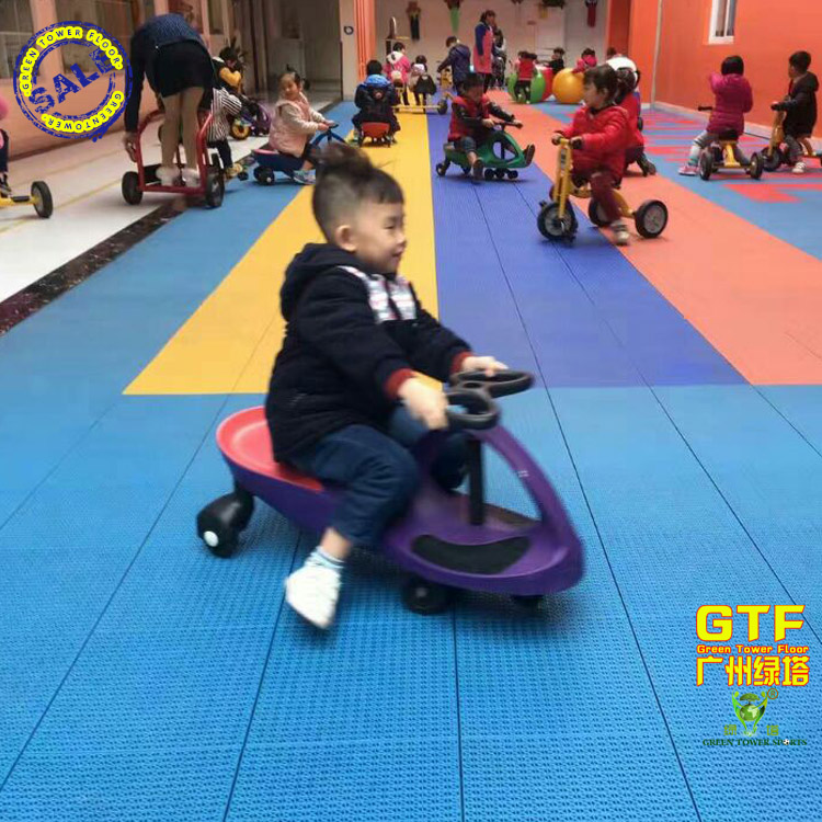 ⑥綠塔拼裝地板十余種顏色顏色多樣可以自由搭配,新穎、美觀。球場檔次高。