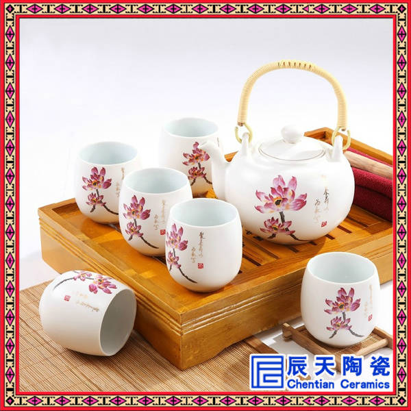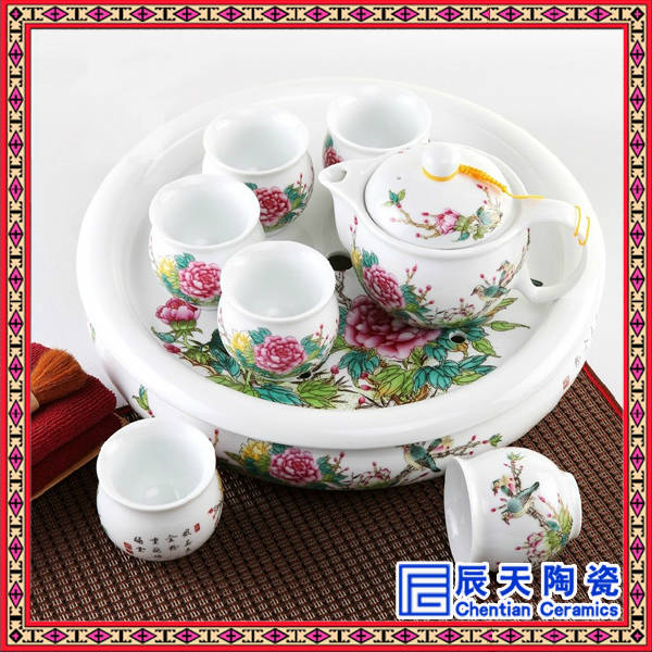景德鎮(zhèn)市辰天陶瓷有限公司專(zhuān)業(yè)生產(chǎn)定做各類(lèi)陶瓷茶具,造型多樣,工藝精美?蛻粢部筛鶕(jù)自己想要的圖案文字等來(lái)樣定做。