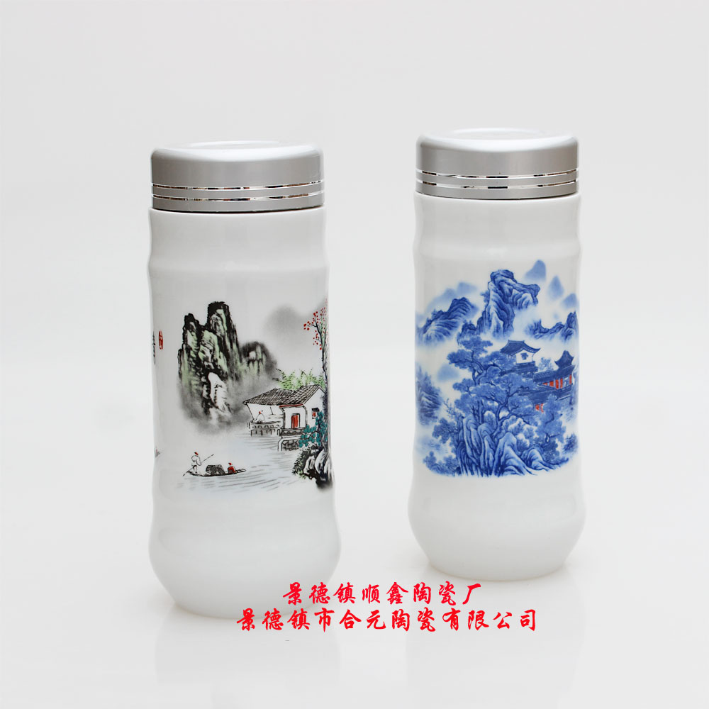 景德鎮(zhèn)合元陶瓷有限公司專業(yè)生產(chǎn)禮品陶瓷保溫杯定制,禮品陶瓷保溫杯定制全部采用骨質(zhì)瓷,雙層結(jié)構(gòu),強(qiáng)磁內(nèi)膽,納米技術(shù),杯內(nèi)采用強(qiáng)磁內(nèi)膽,經(jīng)過(guò)一千三百五十度高溫?zé)贫桑h(huán)保健康,對(duì)人體無(wú)任何傷害。禮品陶瓷保溫杯定制的優(yōu)勢(shì):雙層結(jié)構(gòu),隔熱防燙,含有納米科技,具備很強(qiáng)的吸附功能,降解水中有害物質(zhì),且熱穩(wěn)定性好(一百八十度—二十度熱交換不裂)青花瓷上運(yùn)用天然鈷料在白泥上進(jìn)行繪畫(huà)裝飾,再罩以透明釉,然后在高溫一千三百攝氏度一次燒成,使色料充分滲透于坯釉之中,呈現(xiàn)青翠欲滴的藍(lán)色花紋,顯得幽倩美觀,明凈素 雅。詮釋中國(guó)傳統(tǒng)藝術(shù)韻味的圖案,韌性強(qiáng),氣韻悠長(zhǎng),堪稱杯皿優(yōu)秀。