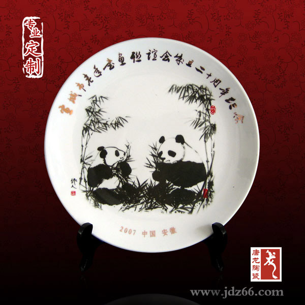 會議禮品中紀(jì)念盤是比較好滴一種,禮品紀(jì)念盤便于陳列,辦公室、書房、客廳、書架上都可以陳列展示開,是易于展示的禮品,而且耐腐蝕、易清洗、不變形等特點(diǎn)是個持久的會議禮品。 唐龍?zhí)沾伞霌P(yáng)華夏文化