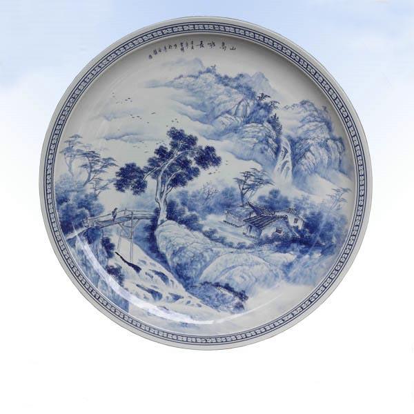 定做大瓷盤畫面是采用景德鎮(zhèn)傳統(tǒng)手工繪制的。畫面有富貴牡丹、江南水鄉(xiāng)、亭臺樓閣、青花山水等經(jīng)典畫面,畫面可以根據(jù)客戶需求定做。海鮮大瓷盤的主體工藝制作,采用全手工制作。