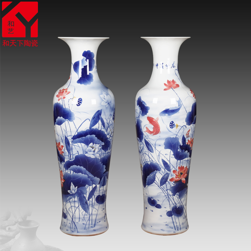 落地陶瓷大花瓶手繪牡丹年年有余,主畫面為年年有余,景德鎮(zhèn)陶瓷大花瓶為商務(wù)禮品瓷器,適應(yīng)大場所,大場面。酒店賓館陳設(shè),企業(yè)單位慶典,店鋪開張,周年紀(jì)念,大樓建筑落成