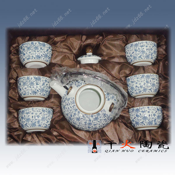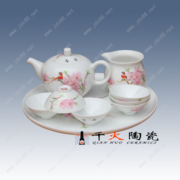 陶瓷茶具泡茶的好處:因?yàn)榇善鞑杈邔?dǎo)熱較慢、保暖適中,與茶不會發(fā)生化學(xué)反響,沏茶能獲致較好的色、香、味,并且這類茶具造型好看、質(zhì)感浩博、扮飾灑脫,極具欣賞價(jià)值。經(jīng)專家研究發(fā)現(xiàn),玻璃和塑料制品所含的有毒物質(zhì)對人體的傷害非常嚴(yán)重。只有經(jīng)過1300多度高溫的陶瓷茶具對人體是完全無害的,所以我們采用景德鎮(zhèn)傳統(tǒng)工藝生產(chǎn)的陶瓷茶具,滿足了人們對健康和品味同步的需求。