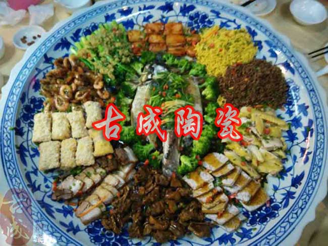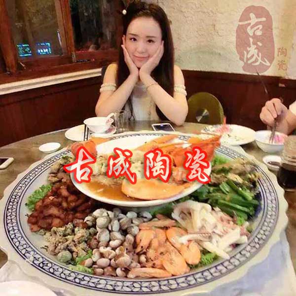 景德鎮(zhèn)古成陶瓷于在2012年推出酒店海鮮大瓷盤以來,F(xiàn)已為浙江溫州“味仙”酒樓、浙江義烏“王都”酒樓、廣東深圳“漢龍”酒樓等一些知名酒樓定做過大魚盤,深受廣大客戶的信賴與支持。其特色的巨型瓷盤與其獨(dú)特的餐飲風(fēng)格,獨(dú)特的飲食氣氛,其形成了一道特色的招牌菜系。深受廣大客戶的追求和喜愛。我廠生產(chǎn)的瓷盤畫面是采用景德鎮(zhèn)傳統(tǒng)手工繪制的。畫面有富貴牡丹、江南水鄉(xiāng)、亭臺(tái)樓閣、青花山水等經(jīng)典畫面,畫面可以根據(jù)客戶需求定做。大瓷盤的主體工藝如果想通過模具制作那是根本不可能的。原料必須采用景德鎮(zhèn)原產(chǎn)的高嶺土簡(jiǎn)稱:(高白泥)以及傳統(tǒng)的手工拉坯工藝成型。因此制作這款陶瓷的開始都是老師傅手工拉坯。修胚待泥胚干燥后,純手工繪制圖案。這是現(xiàn)代貼花工藝不可企及的。而這僅僅是其中的一部分,其最后取決與窯火燒制(古有十窯七不成的說法)就像我們制作10塊150公分的瓷盤就必須要準(zhǔn)備15塊泥胚。甚可能會(huì)更多?上脒@不僅是我們?nèi)沼玫拇杀P。更多的是一件藝術(shù)品。