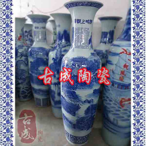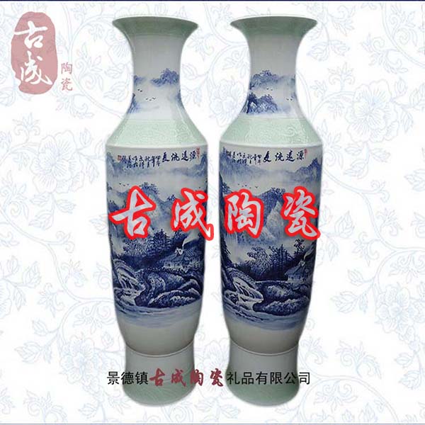 陶瓷大花瓶用于大廳、門廳、客廳等擺設(shè),主要適合于開業(yè)禮品,大樓建筑落成、工程竣工開業(yè)、奠基典禮、酒店賓館陳設(shè)、企事業(yè)單位喬遷、周年紀(jì)念 、學(xué)校校慶、搬遷新居等。制作工藝為景德鎮(zhèn)純手工繪制,高白泥手工拉胚,高白釉上底色,整個(gè)生產(chǎn)工序要經(jīng)過淘泥、摞泥、拉坯、修坯、繪畫、上釉、燒窯、成瓷等近七十道工藝之多,并可根據(jù)您的特殊需要在陶瓷大花瓶身上可燒制logo、公司名稱、人名、贈言,紀(jì)念用語,年月日等。