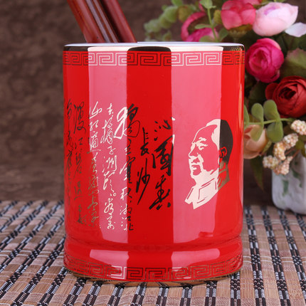 中國紅瓷詩詞辦公文具三件套筆筒陶瓷商務(wù)禮品定制