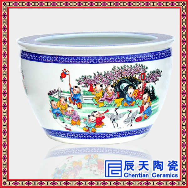 景德鎮(zhèn)陶瓷魚缸是經(jīng)1380度高溫?zé)贫,平滑靚麗,顏色經(jīng)久耐磨,保證花色不會(huì)在使用過程中脫落,采用純手工拉坯純手工刻繪并輔以專業(yè)畫面設(shè)計(jì),美觀新穎,魚缸的釉面,紋理,顏色,形狀,都具有景德鎮(zhèn)的陶瓷藝術(shù)特色,古典優(yōu)雅。陶瓷有著非常高的收藏價(jià)值,時(shí)間越久她就越值錢。這也就是為什么陶瓷缸越來(lái)越受到廣大民眾的追捧,陶瓷缸作為大禮品,酒店、公司開業(yè)送禮,單位、新居喬遷送禮,大樓封頂、竣工送禮,大型活動(dòng)奠基禮品等,都顯得非常的大氣、有面子,陶瓷缸上面還可寫上一些祝福語(yǔ)、贈(zèng)語(yǔ)等等,讓她成為您和朋友之間永恒的友誼紀(jì)念的禮品。