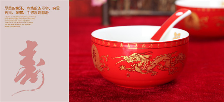 我廠壽碗定做接受來樣定制,可以在壽碗上印上壽星的彩色相片,或者寫上“某某老人幾十大壽”等字樣,壽碗定做也可以在碗上刻有各種“壽”字或寓意長壽的壽桃、松柏、仙鶴等長壽象征物圖形。