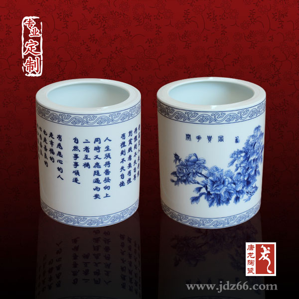 景德鎮(zhèn)陶瓷筆筒可用于文人,公司、單位經(jīng)常寫作之人,可插入毛筆 、鉛筆、水筆等!在景德鎮(zhèn)陶瓷筆筒上可加印任何logo文字、照片等,用于作為紀念收藏品,也可以做為公司一種企業(yè)文化的傳遞。