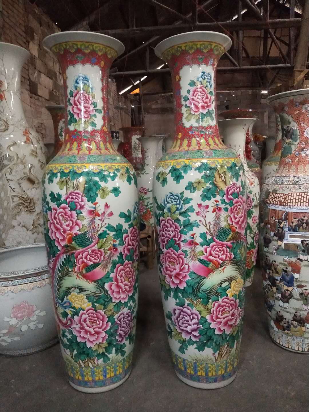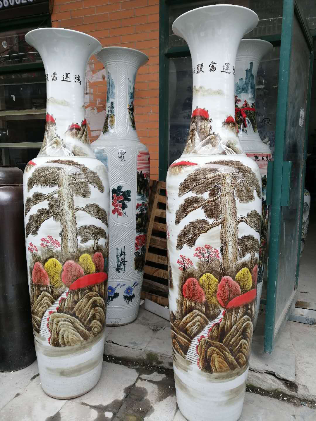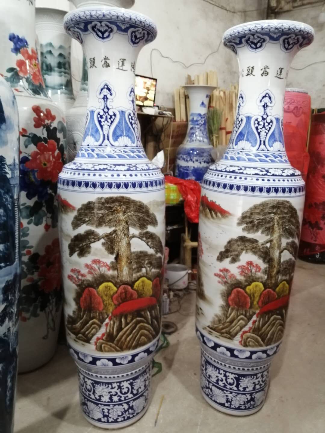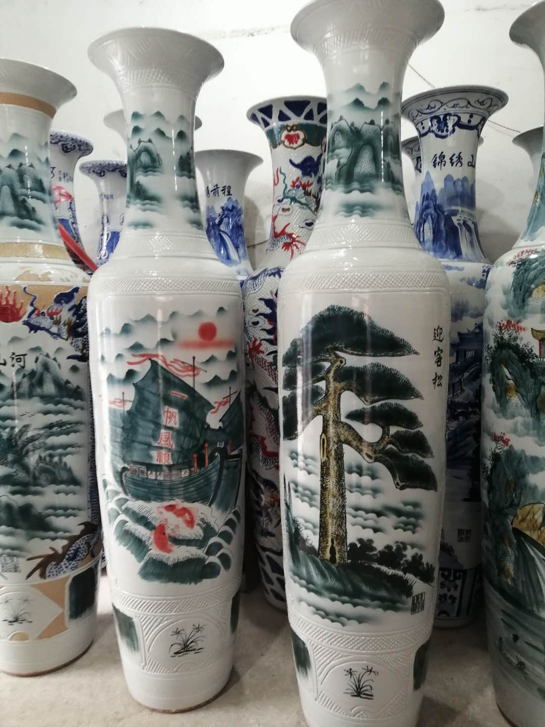 落地大花瓶是一種陶瓷工藝品,也是一款精美的擺件,用它來裝扮空間也成為現(xiàn)在的流行趨勢。落地大花瓶外表精美,且表面光滑,摸上去非常有質(zhì)感,所以不管是您自己用來做裝飾還是送人,落地大花瓶都會給人一種高端大氣上檔次的感覺。景德鎮(zhèn)市合元陶瓷有限公司就是專門生產(chǎn)落地陶瓷大花瓶的廠家,常用規(guī)格有1.8米和2米,也有高達3米以上的?钍蕉鄻,圖案豐富。落地大花瓶有青花、粉 彩、色釉等圖案,采用純手工拉坯制作,可私人訂制。!