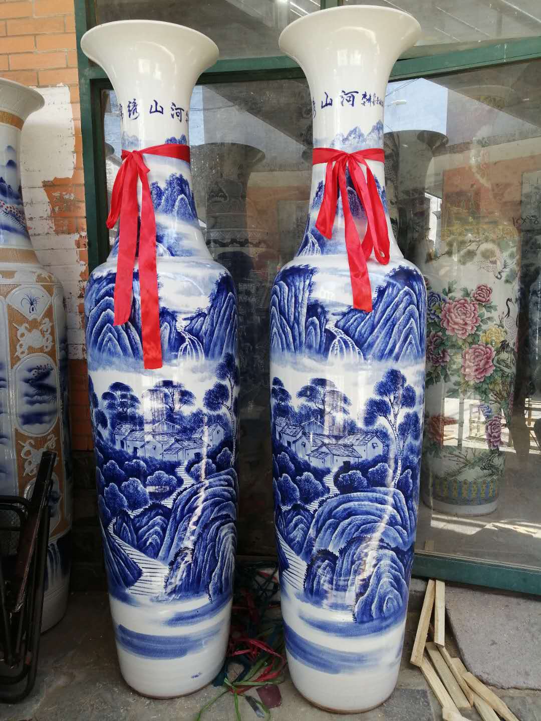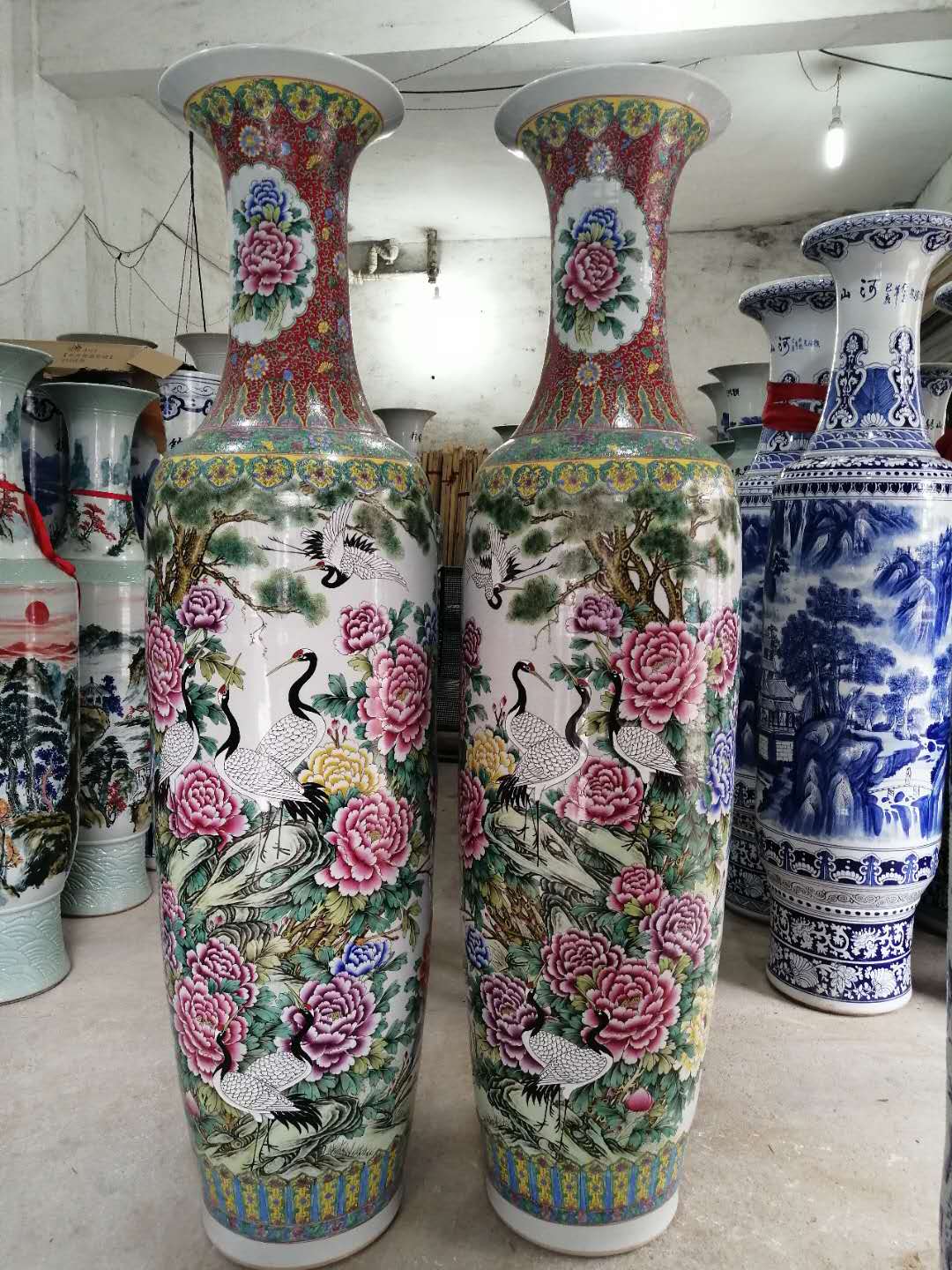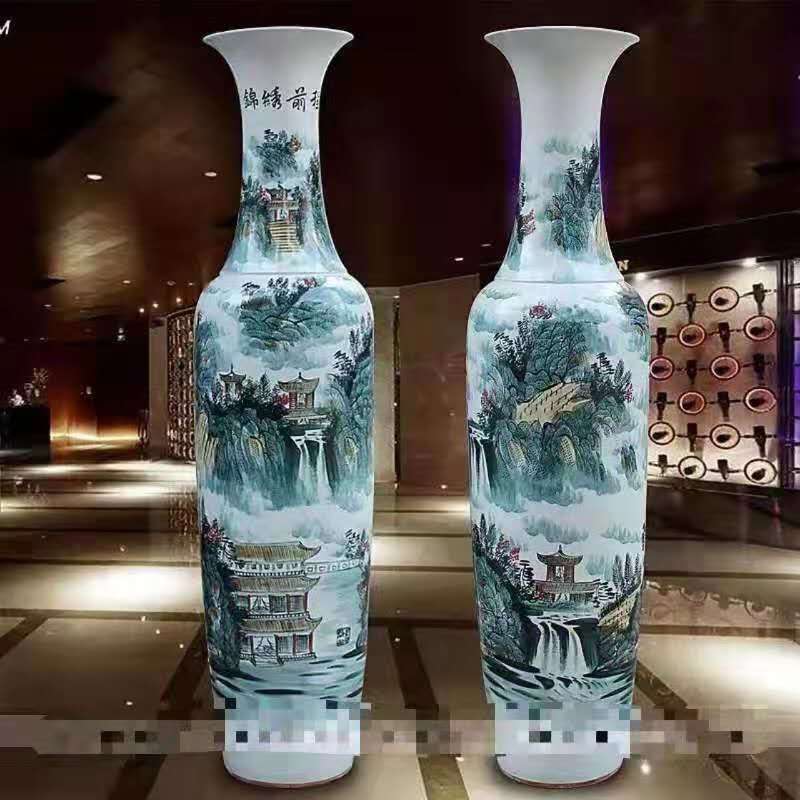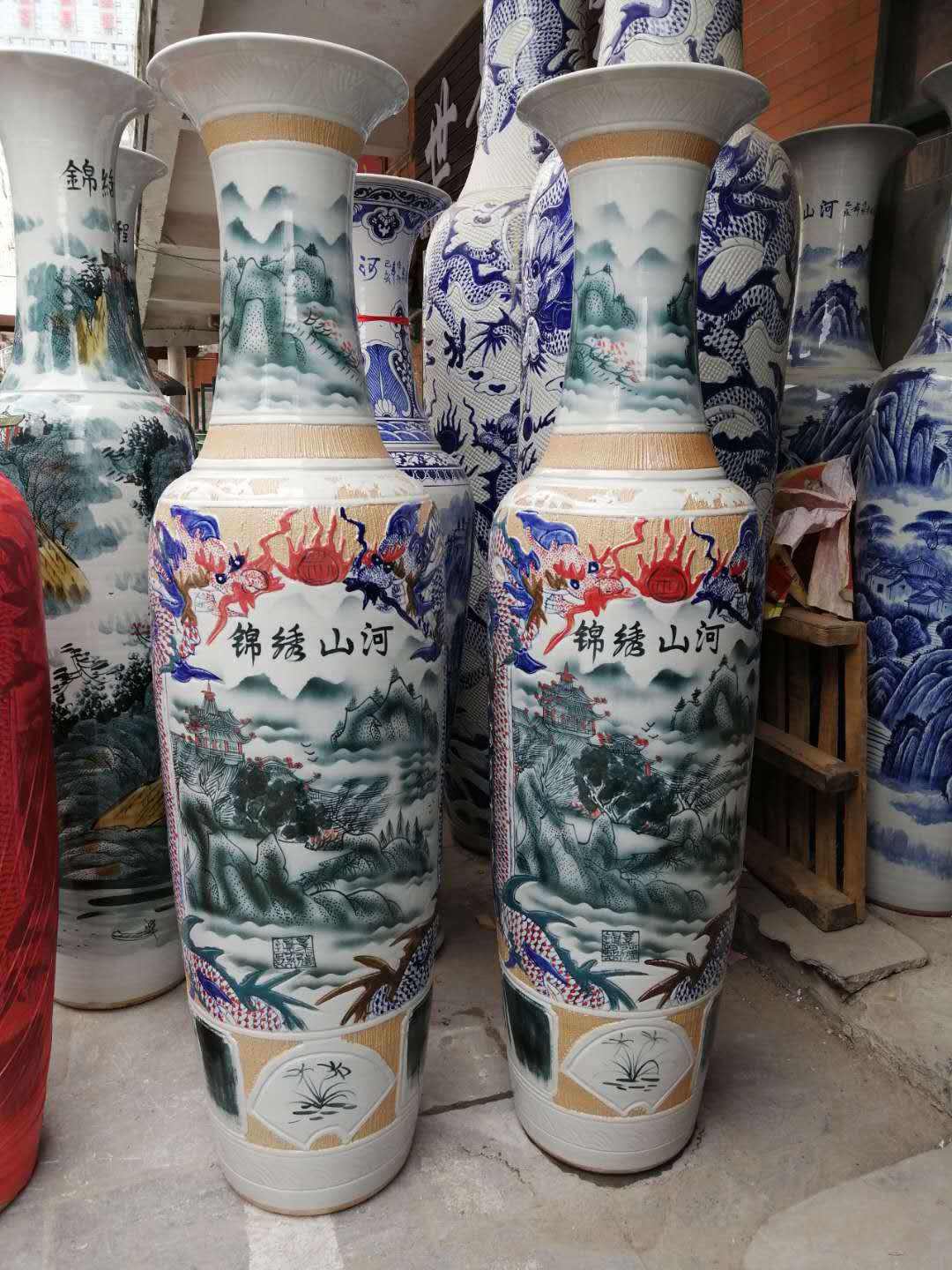 落地大花瓶是一種陶瓷工藝品,也是一款精美的擺件,用它來裝扮空間也成為現(xiàn)在的流行趨勢。落地大花瓶外表精美,且表面光滑,摸上去非常有質(zhì)感,所以不管是您自己用來做裝飾還是送人,落地大花瓶都會給人一種高端大氣上檔次的感覺。景德鎮(zhèn)市合元陶瓷有限公司就是專門生產(chǎn)落地陶瓷大花瓶的廠家,常用規(guī)格有1.8米和2米,也有高達3米以上的?钍蕉鄻,圖案豐富。落地大花瓶有青花、粉 彩、色釉等圖案,采用純手工拉坯制作,可私人訂制。!