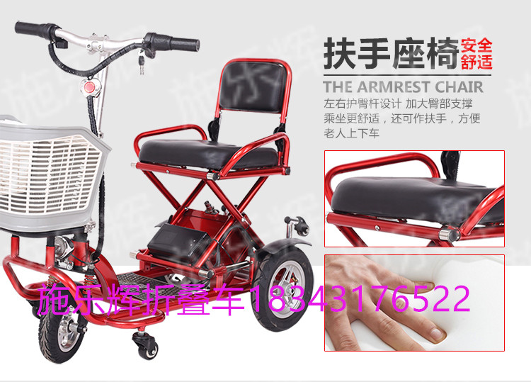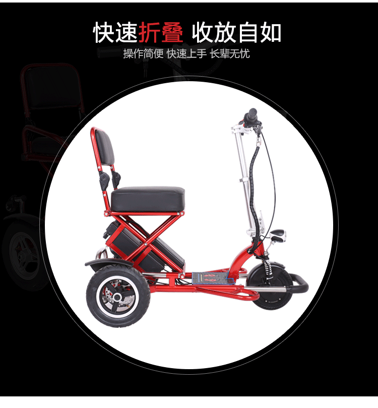 這是一款后驅(qū)動(dòng)電磁制動(dòng)的老年代步車,松手即停,鋼制,可折疊。適合八十歲以上老人或可單手操作者,動(dòng)力大,速度慢