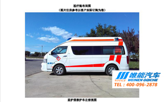 蘭州唯能汽車銷售有限公司,是甘青寧從事衛(wèi)生醫(yī) 療特種車的專業(yè)銷售公司,在蘭州駐有專業(yè)售后團隊,確保甘青寧地區(qū)內12小時上門服務,解決客戶購車使用環(huán)節(jié)的后顧之憂。為您提供包括:進口奔馳斯賓特,奔馳凌特、威霆、進口大眾凱路威、東風嘉譽、福特全順、依維柯、上汽大通、福田、金杯等中高端醫(yī) 療救護車。