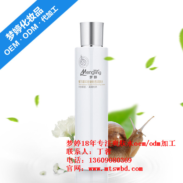 廣州夢(mèng)婷生物科技有限公司是一家大型廣州爽膚水oem代加工廠家,成立于2000年,坐落于廣州白云區(qū)人和鎮(zhèn),擁有國際領(lǐng)先的gmp標(biāo)準(zhǔn)廠房,10條爽膚水oem生產(chǎn)自動(dòng)化標(biāo)準(zhǔn)流水線。工廠擁有先進(jìn)的爽膚水代加工檢驗(yàn)設(shè)備和國內(nèi)一流的生產(chǎn)環(huán)境,2014年通過了iso9001、iso14001、gmpc(美版)體系認(rèn)證。夢(mèng)婷爽膚水oem貼牌的工業(yè)區(qū)內(nèi)規(guī)范高效的政府管理,完善的基礎(chǔ)設(shè)施,發(fā)達(dá)的交通物流,為企業(yè)爽膚水oem代工發(fā)展提供了便利的發(fā)展環(huán)境。夢(mèng)婷標(biāo)準(zhǔn)的生產(chǎn)規(guī)范、前沿的生產(chǎn)設(shè)備、精準(zhǔn)的生產(chǎn)工藝,保證每一瓶產(chǎn)品在安 全性和有效性達(dá)到國際領(lǐng)先水平。
