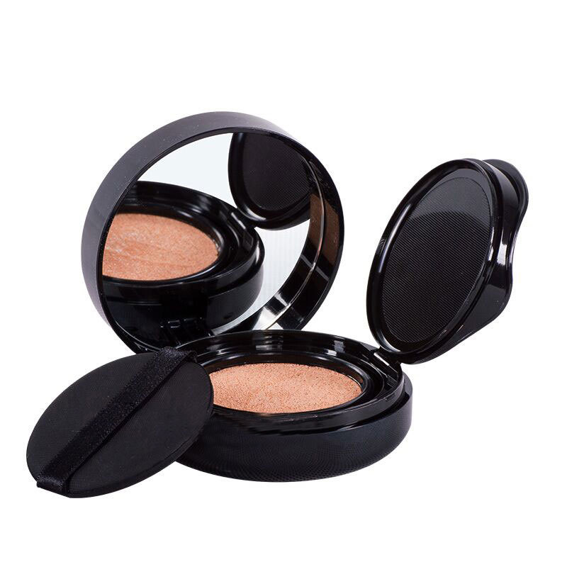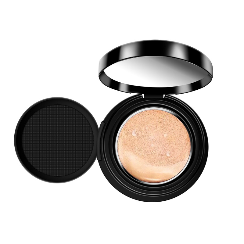 1.用粉 撲輕輕按下海綿墊,均勻蘸取足量的粉 底液。