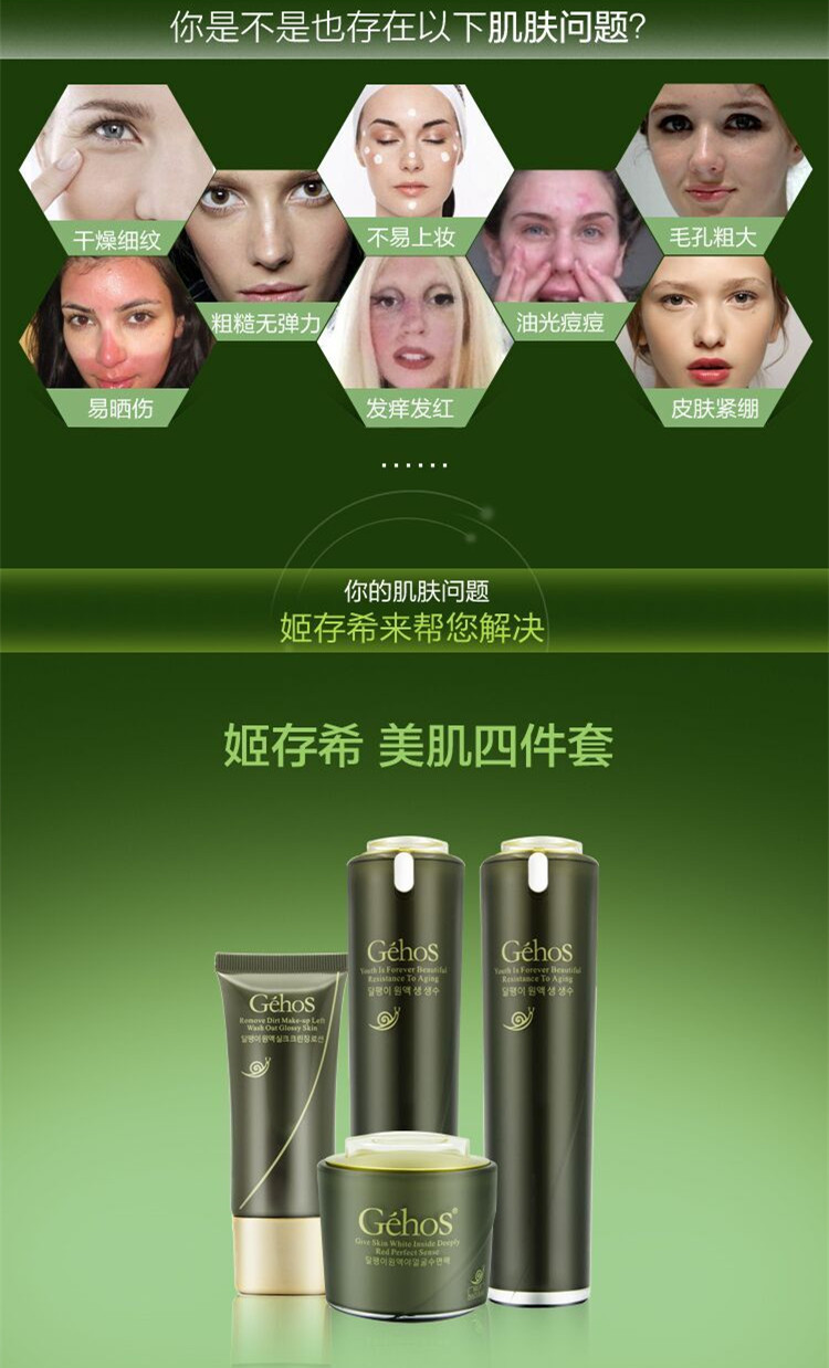 姬存希蝸牛美肌四件套 補(bǔ)水保濕 去黃去印淡斑