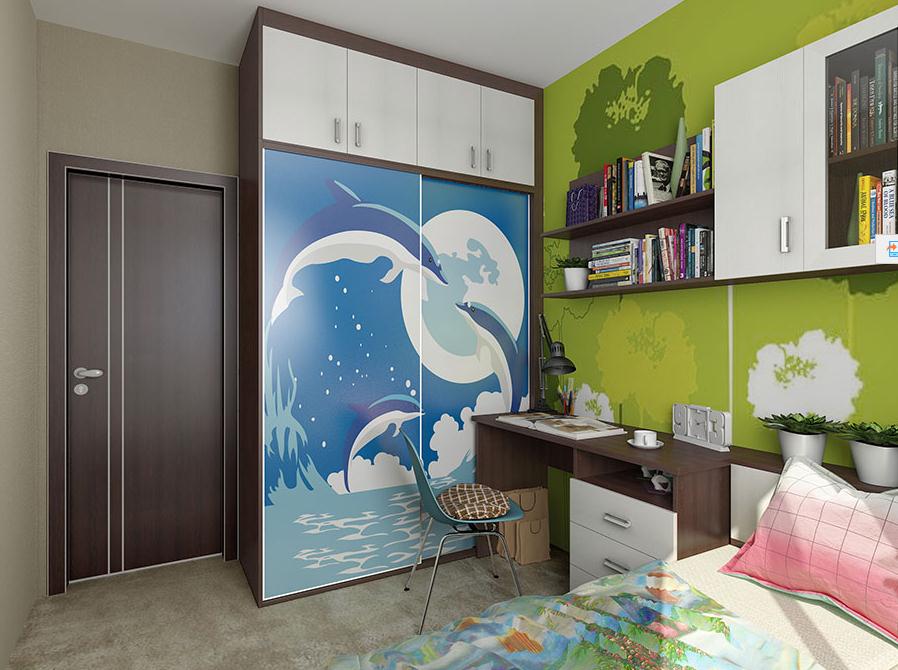 榻榻米,書桌,衣柜的空間利用緊湊合理,滿足學(xué)習(xí)、休息、儲(chǔ)物的功能,收納系統(tǒng)細(xì)化和最大化,能保持空間的暢通整潔。整體用色青春活力,給人積極向上的感覺。