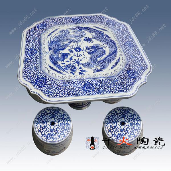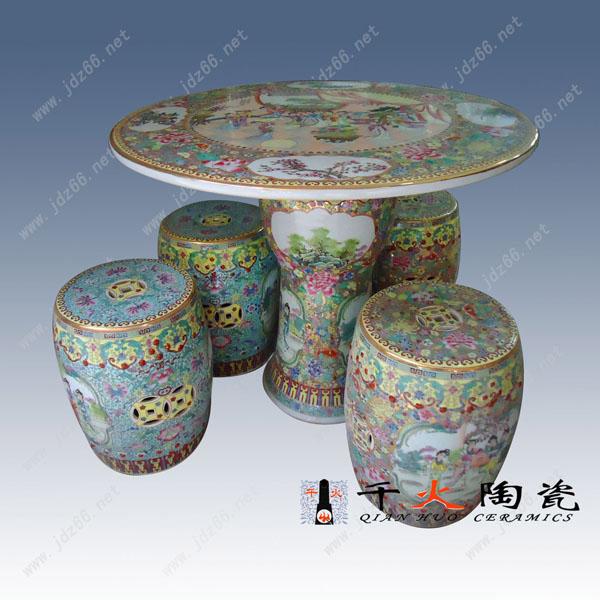 景德鎮(zhèn)廠家直銷陶瓷桌凳、景德鎮(zhèn)陶瓷瓷桌、青花陶瓷桌子陶瓷凳子、粉彩陶瓷桌凳、手繪陶瓷桌凳居家用品、園林用品、居家擺設(shè)品園林?jǐn)[設(shè)品。 景德鎮(zhèn)市唐龍?zhí)沾山?jīng)營部生產(chǎn)銷售商務(wù)禮品、園林用品、居家用品陶瓷桌、陶瓷凳(盛夏之夜,一家人在陽臺(tái)、庭院中,圍坐在陶瓷桌旁,喝茶賞月,其樂融融…….)景德鎮(zhèn)陶瓷桌子(凳子):高溫?zé)频奶沾勺雷、凳子為景德?zhèn)特有,它可以放在室外或者陽臺(tái),不怕日曬雨淋,不會(huì)產(chǎn)生類似破損或者變型等問題,陶瓷桌面、凳子的畫面是手工繪畫的,藝術(shù)感非常強(qiáng)。同時(shí)我們工廠可以單獨(dú)繪制客戶喜愛的畫面,或者贈(zèng)送題字等,具有非凡的紀(jì)念意義!景德鎮(zhèn)陶瓷桌凳具有不怕風(fēng)吹雨打、歷久如新、易清潔等特點(diǎn)。是家居使用、園林?jǐn)[設(shè)、饋贈(zèng)親友的時(shí)尚用品。放置在庭院、露臺(tái)、陽臺(tái)雅致高貴。本公司完全采用景德鎮(zhèn)傳統(tǒng)手工陶瓷制作工藝制作。圓桌面、方桌面,青花、粉彩、墨彩等畫面齊全,款式多樣。