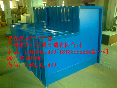 材質(zhì):寶石藍(lán)鋼制框架,建行藍(lán)色防火板飾面,配兩個透明亞克力票據(jù)盒。