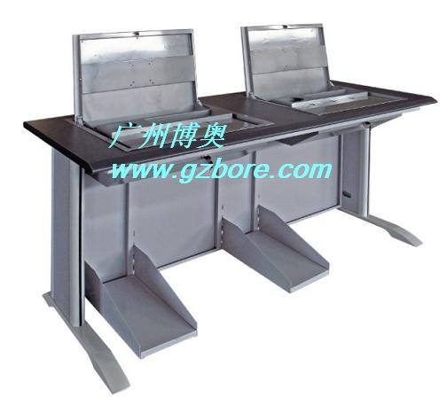 近年市場(chǎng)上出現(xiàn)了一種很受學(xué)校、企事業(yè)單位歡迎的能隱藏顯示器的新型翻轉(zhuǎn)電腦桌!該產(chǎn)品主要應(yīng)用于各種會(huì)議室,電教室、電腦機(jī)房、培訓(xùn)教室及多功能會(huì)議廳等專業(yè)教室。翻轉(zhuǎn)電腦桌使用方法非常簡(jiǎn)單,使用者只需要輕輕拉動(dòng)翻轉(zhuǎn)器的啟動(dòng)開關(guān)拉鈕,隱藏在桌子內(nèi)的顯示器、鍵盤、鼠標(biāo)會(huì)自動(dòng)從液晶屏翻轉(zhuǎn)器里面翻起與桌面齊平;當(dāng)不需要使用電腦時(shí),只需用手按下翻轉(zhuǎn)器面板,顯示器、鼠標(biāo)、鍵盤就可以又同時(shí)隱藏到桌子里面,該產(chǎn)品具有防盜、防塵保持桌面平整,美化桌面等功能,節(jié)約空間,實(shí)現(xiàn)一桌兩用功能,還可以存放各類文具和學(xué)習(xí)用品。在目前單位用房緊張,房?jī)r(jià)高漲,提倡節(jié)約的今天具有很高的實(shí)用價(jià)值!翻轉(zhuǎn)電腦桌是新生事物,初期因地域不同人們還習(xí)慣稱呼它為:多媒體電腦桌、顯示器隱藏機(jī)房電腦桌、培訓(xùn)電腦桌、學(xué)校電腦桌、計(jì)算機(jī)教室桌椅、電教室電腦桌、隱藏式電腦桌、翻轉(zhuǎn)式電腦桌、多媒體教室電腦桌等名稱。該翻轉(zhuǎn)電腦桌成為廣大多媒體系統(tǒng)集成公司、機(jī)房裝修、機(jī)房改造公司贏得招投標(biāo)的又一制勝法寶。在翻轉(zhuǎn)電腦桌領(lǐng)域,廣州博奧是行業(yè)公認(rèn)品牌,銷量遙遙領(lǐng)先!