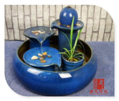 3、陶瓷風水噴泉擺件種類繁多,實用,耐用,可以養(yǎng)風水魚,種植植物等。