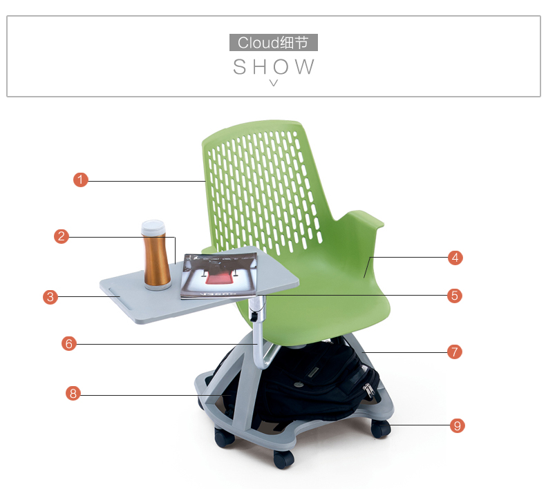 寫(xiě)字板培訓(xùn)椅多種配置圖示: