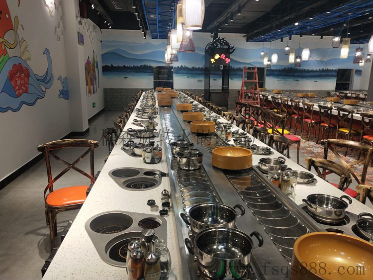 佛 山樵森回轉自助小火鍋設備輸送帶電動餐桌特點優(yōu)勢如下: