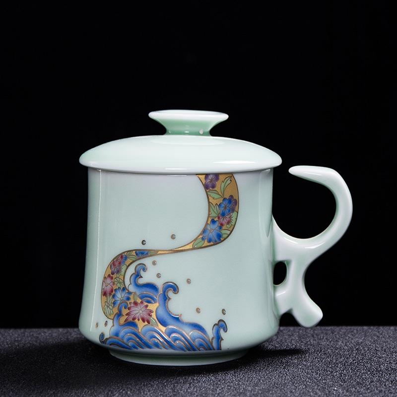青瓷茶杯大號容量有500ml左右,大氣優(yōu)美,適合男士使用。