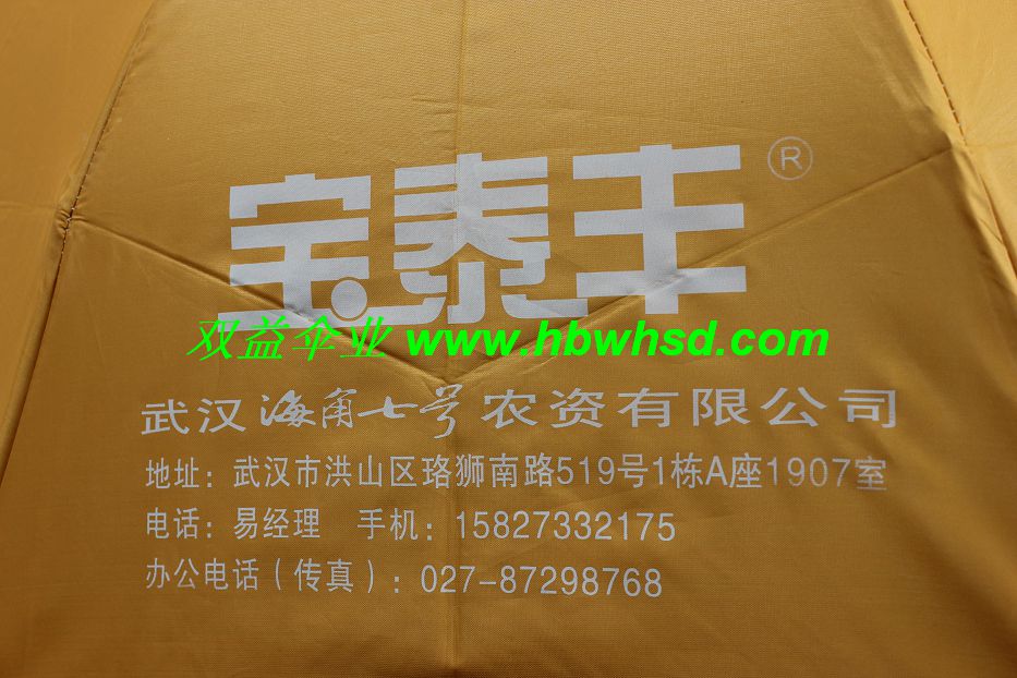 武漢雙益?zhèn)銟I(yè)有限公司是中部地區(qū)一家大型制傘專業(yè)廠,是真正的實(shí)體傘廠;武漢雙益?zhèn)銖S不僅在武漢市東西湖區(qū)吳家山龍鑫工業(yè)園內(nèi)有5000平方米的廠房,我們傘廠還擁有百多名員工及專業(yè)的設(shè)計(jì)隊(duì)伍。武漢雙益?zhèn)銖S在2007年正式注冊,我們傘廠成立以來,一直以個(gè)性化、低成本的設(shè)計(jì)思想為導(dǎo)向,立足長遠(yuǎn),注重品牌。如今,武漢雙益?zhèn)銖S在乘風(fēng)破浪的同時(shí),并未松懈;我們傘廠始終視質(zhì)量如生命,“質(zhì)量第一,客戶至上”是我們傘廠的...